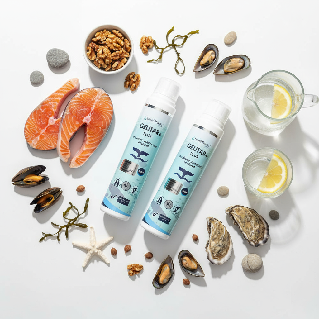 • Aporta Colágeno Marino e Hidrolizado, esenciales para la regeneración de tejidos, piel y cartílagos.